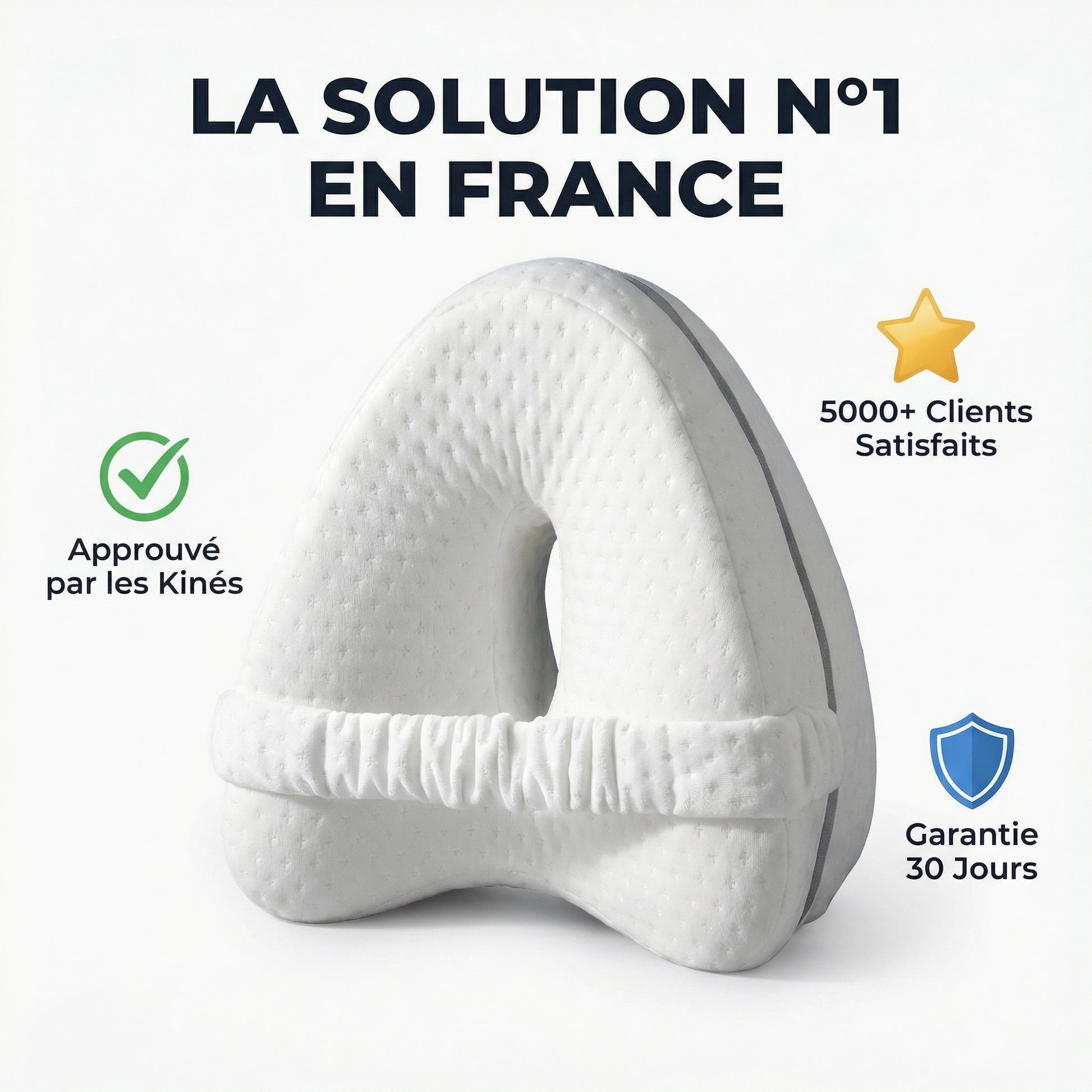 Conçu pour maintenir vos jambes dans une position naturelle, ce coussin aide à réduire les tensions au niveau des hanches, du bassin et du bas du dos pendant le sommeil.